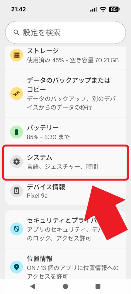 ▽ 実際の操作画面の例:Google Pixel 9aの場合
