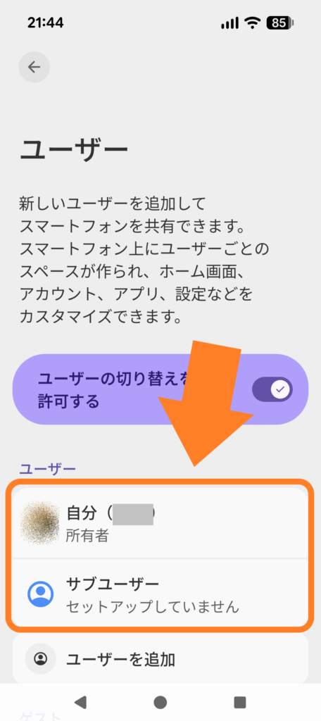 Android ユーザー切り替えのやり方
