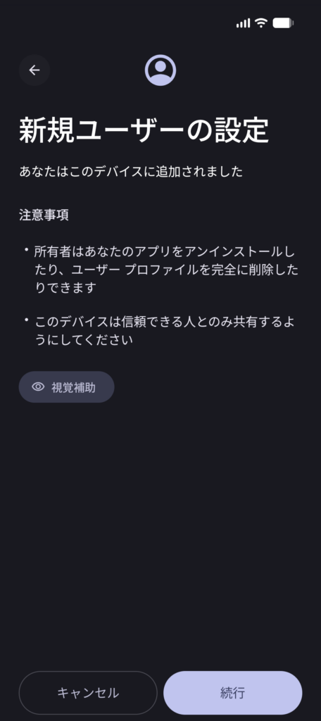 - [ ユーザー切り替え ] をタップすると、ユーザーが切り替わります
