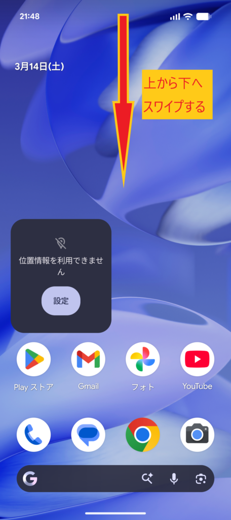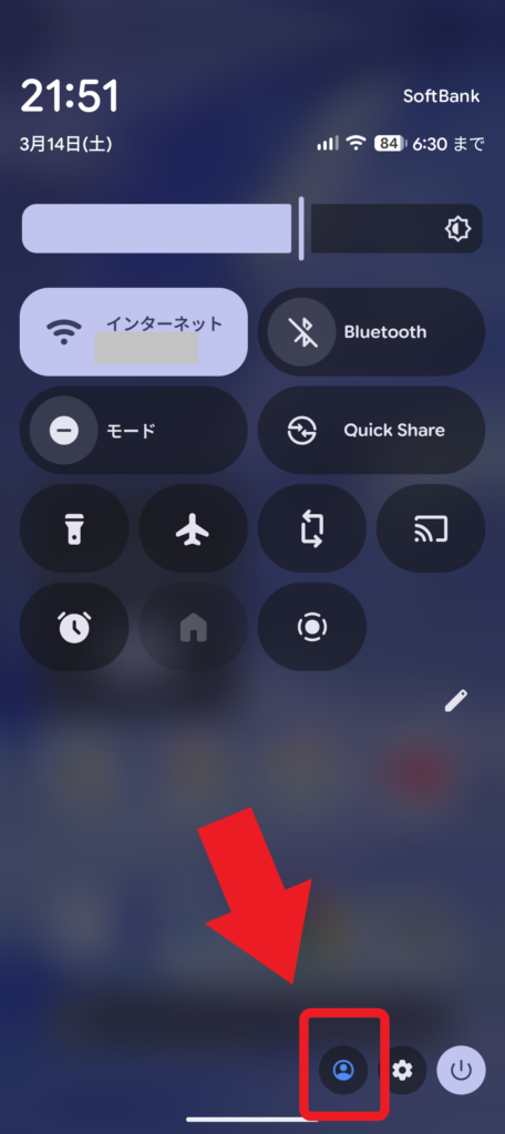 - 画面を上から下になぞり、クイックアクセスを開きます